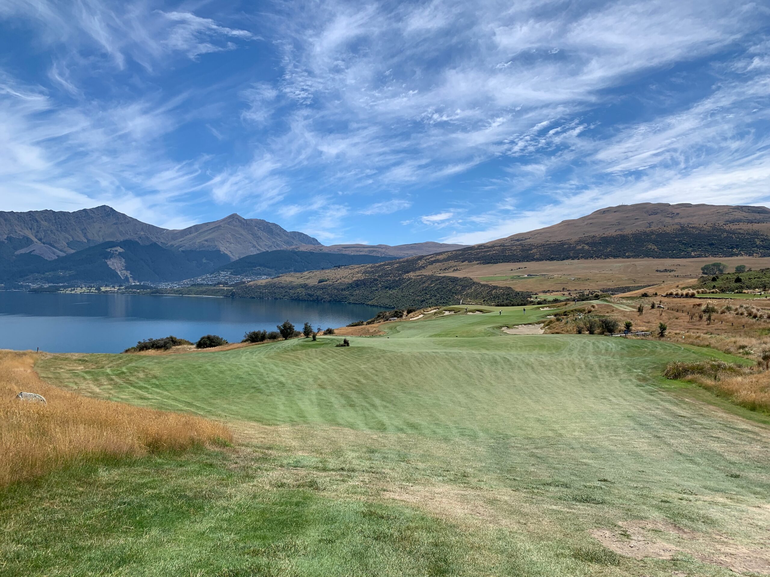 With a backdrop of 2,300 vertical metres of the Remarkables mountain range and an outstanding lake panorama, Jack’s Point Golf course is one of the most visually spectacular in the world. Designed in harmony with the natural environment, the course weaves through native tussock grasslands, dramatic rock outcrops, steep bluffs and swathes of native bush to the edge of Lake Wakatipu.